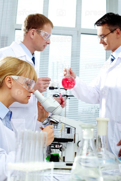 Ученые-химики проводят эксперимент