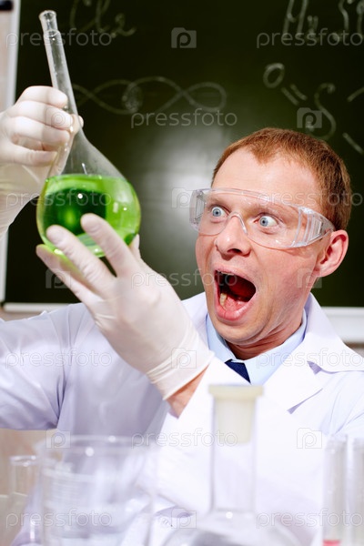 Удивленный химик с колбой
