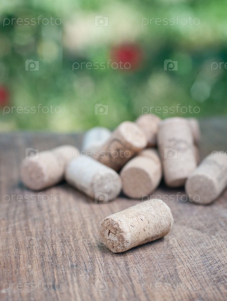 Пробки на деревянном столе