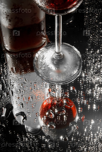 Фон с каплями воды и отражением бокала