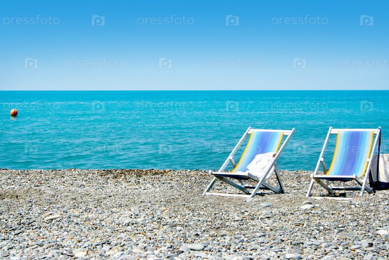 Лежаки стоят на берегу моря