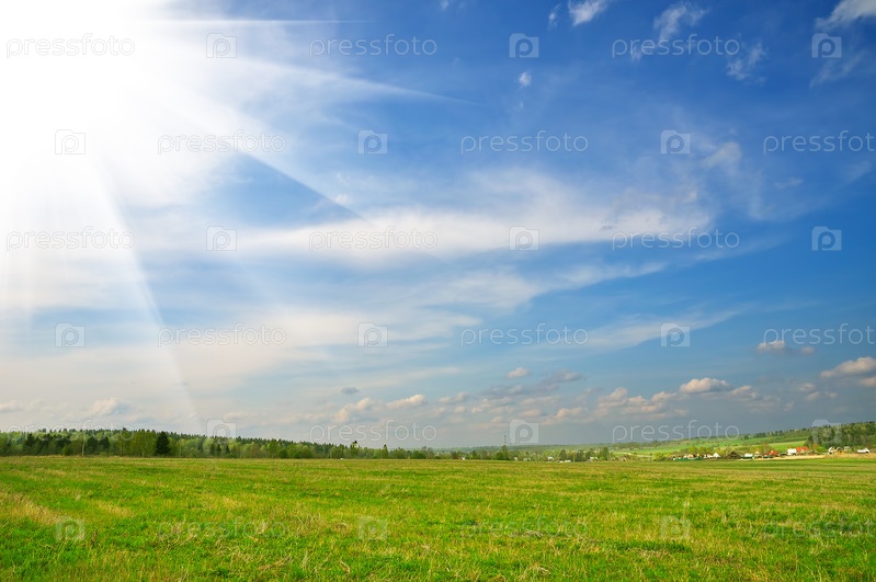 Голубое небо и зеленое поле
