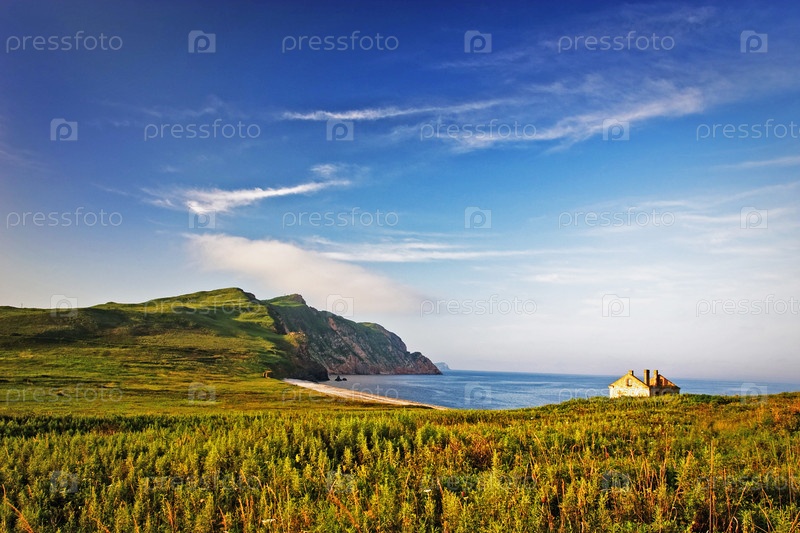 Дом на берегу океана, красивый летний пейзаж