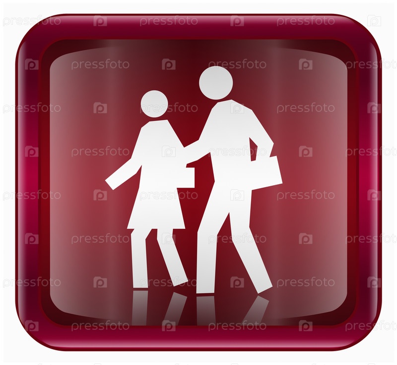 Темно-красная веб-иконка с изображением идущих людей, изолировано на белом фоне