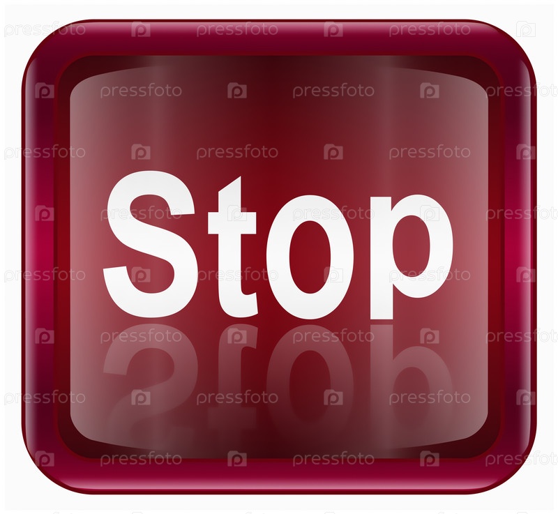 Темно-красная веб-иконка с изображением знака стоп, изолировано на белом фоне