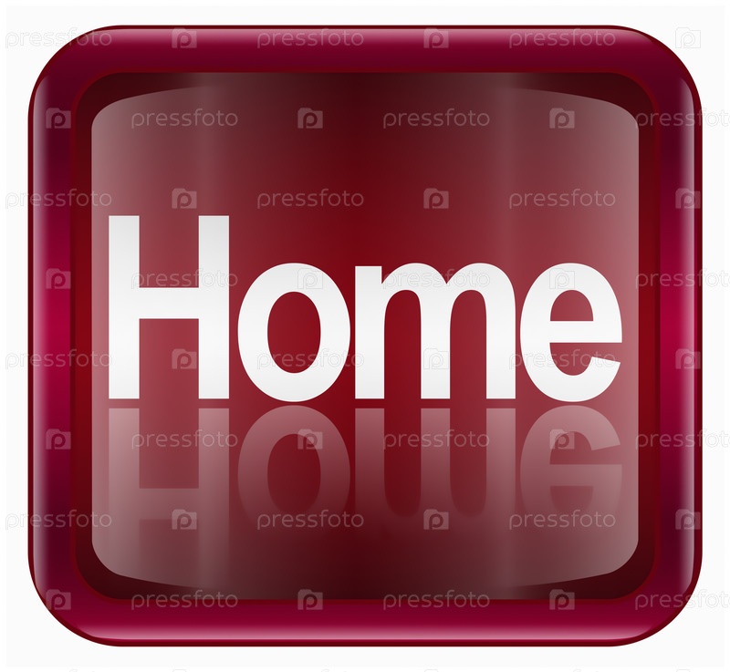 Темно-красный веб-иконка с изображением слова 'Home', изолированная на белом фоне
