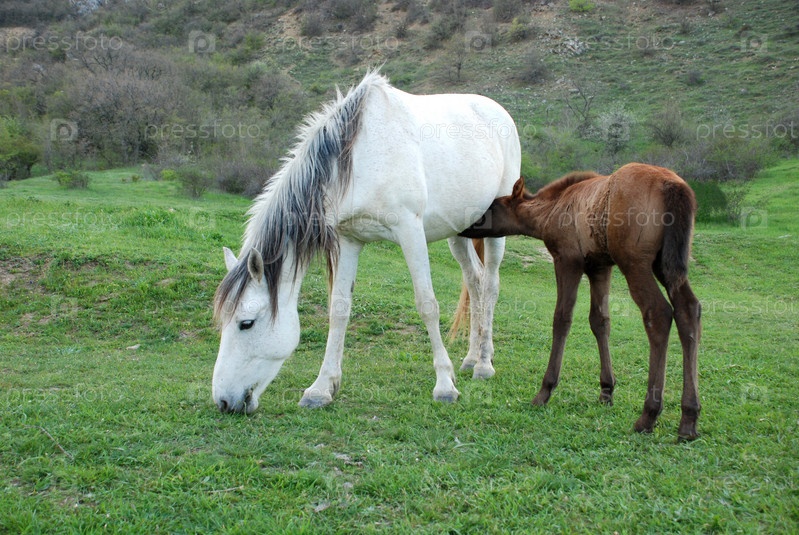 Жеребенок сосет молоко матери