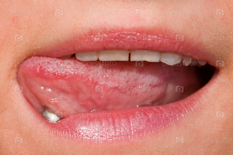 Рот с проколотым языком