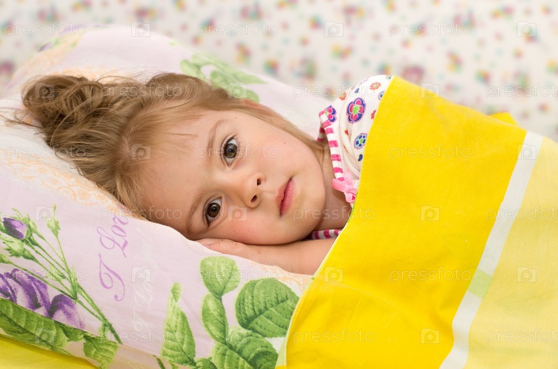 Грустная девочка лежит на кровати