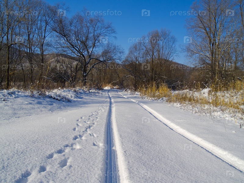 Автомобильный след на дороге зимой