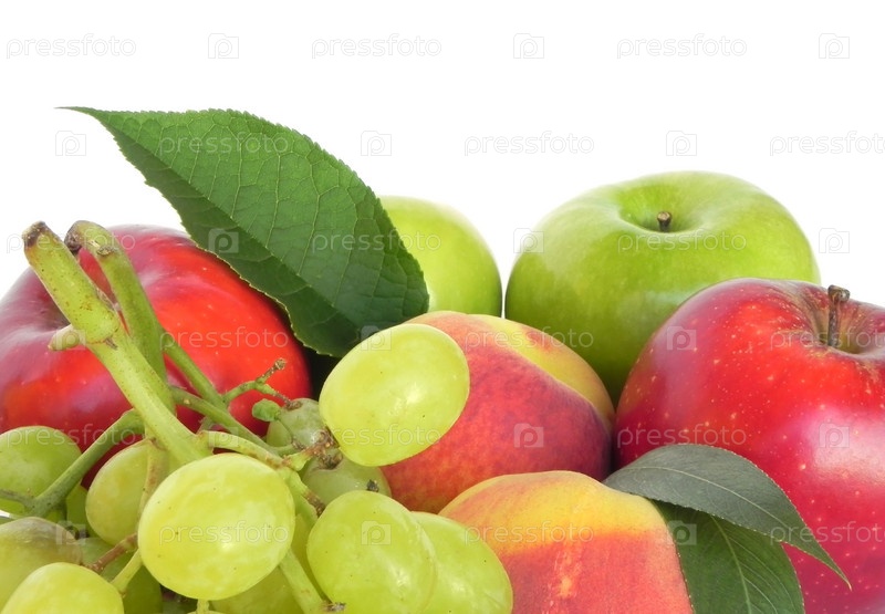 Разные фрукты на белом фоне