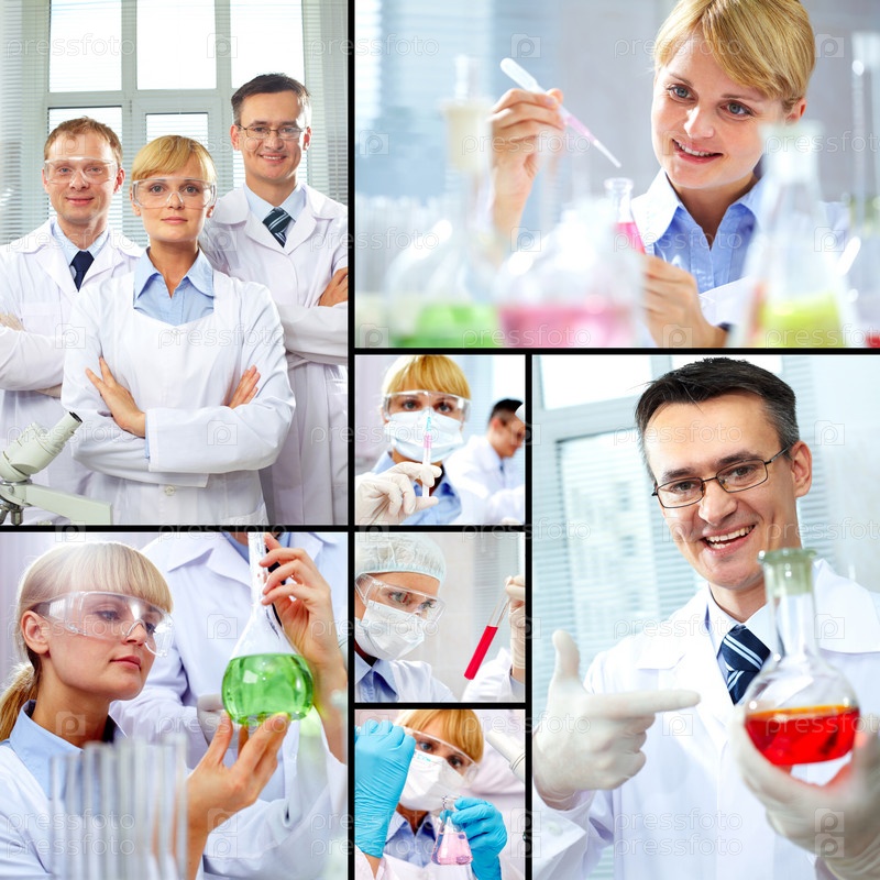 Ученые-химики на работе, коллаж