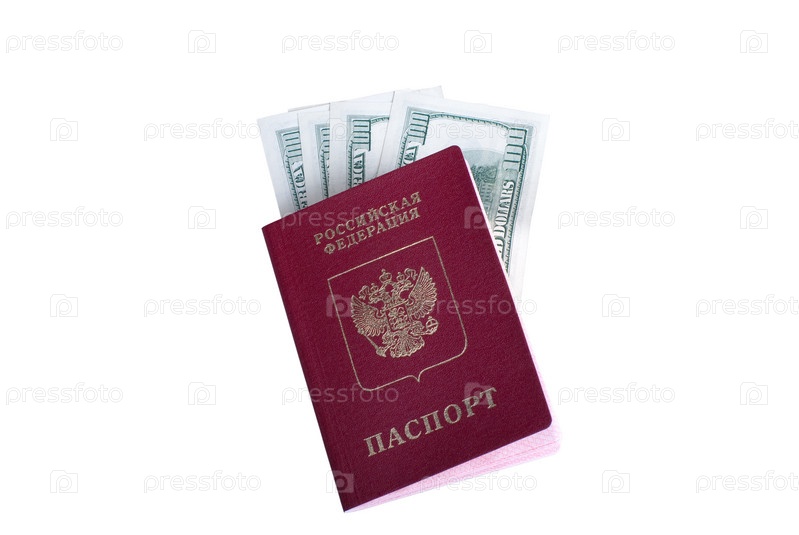 Российский паспорт с долларовыми купюрами внутри