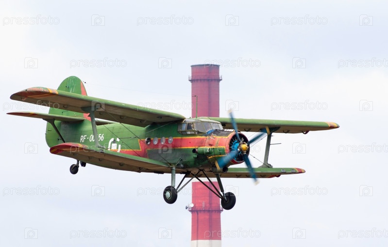 Самолет Ан-2 на фоне фабричной трубы
