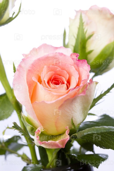Свежие розы на белом фоне
