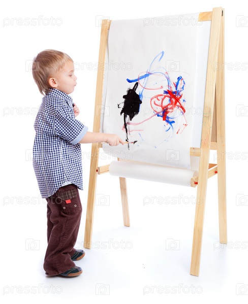 Мальчик рисует на мольберте