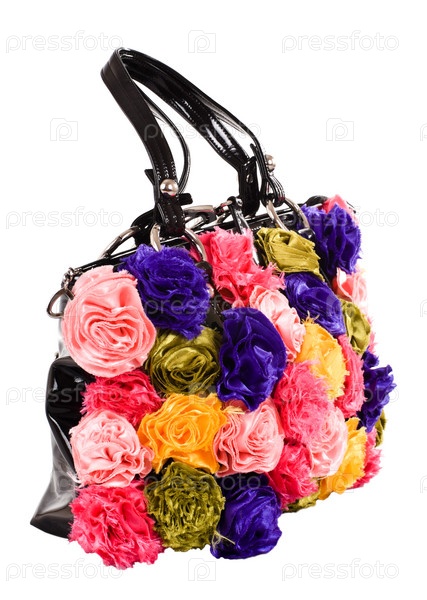 Женская сумка с искусственными цветами, изолированная на белом
