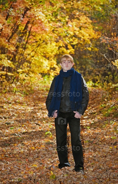 Молодой парень в осеннем лесу