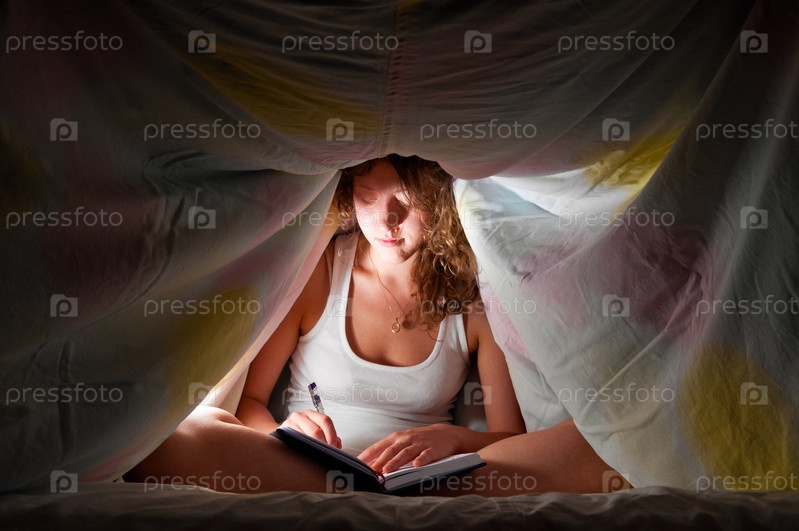 Девушка с ежедневником под одеялом