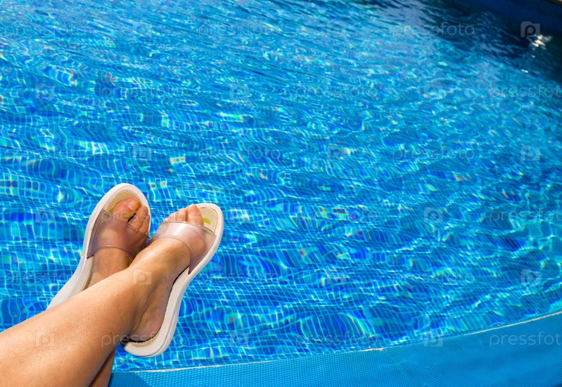 Женские ноги на краю бассейна