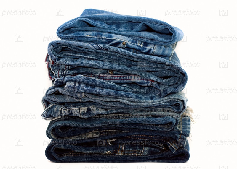 Стопка джинсов на белом фоне