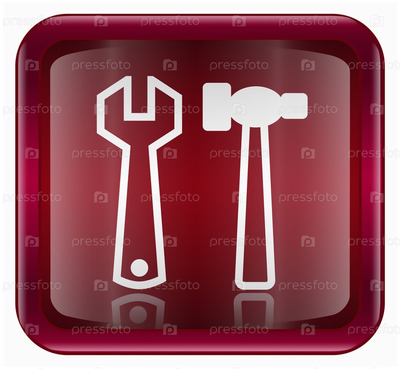 Темно-красная веб-иконка с изображением инструментов