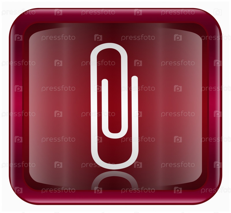 Темно-красная веб-иконка с изображением скрепки, изолировано на белом фоне