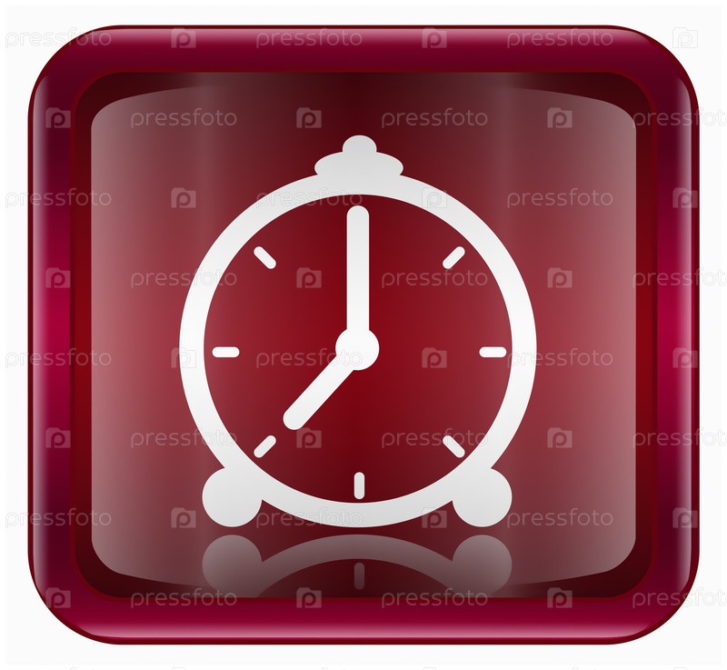 Темно-красная веб-иконка с изображением часов, изолировано на белом фоне