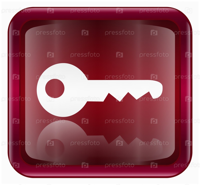 Темно-красная веб-иконка с изображением ключа, изолировано на белом фоне