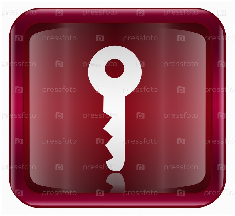 Темно-красная веб-иконка с изображением ключа, изолировано на белом фоне