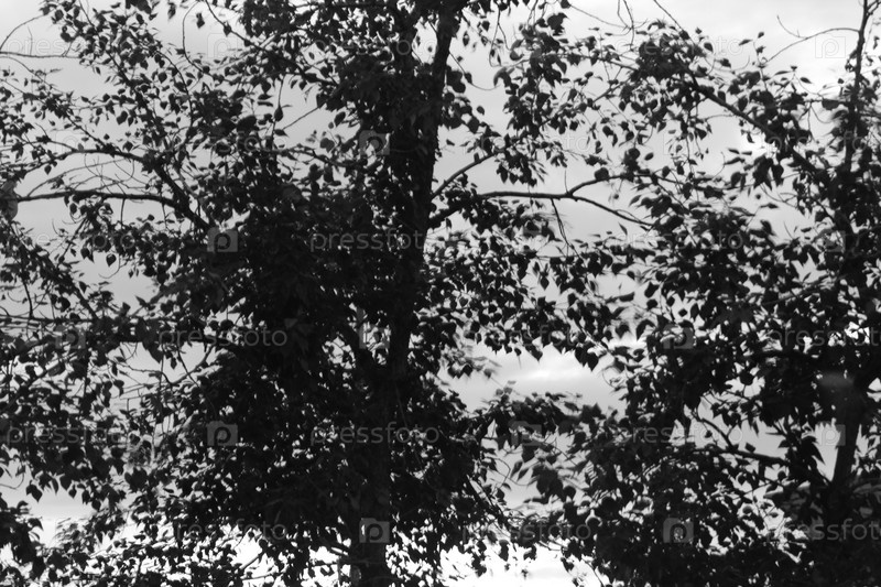 Ветви деревьев на фоне неба. Черное и белое