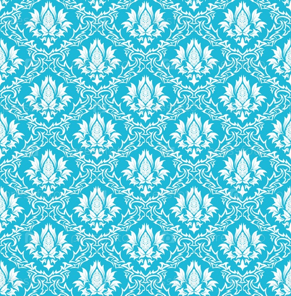Голубые обои с белым цветочным рисунком