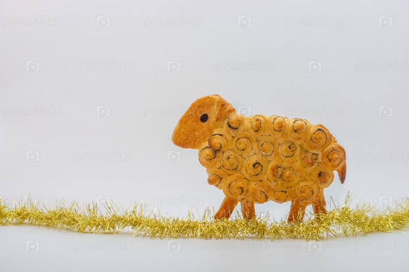 Печенье в форме овцы на белом фоне