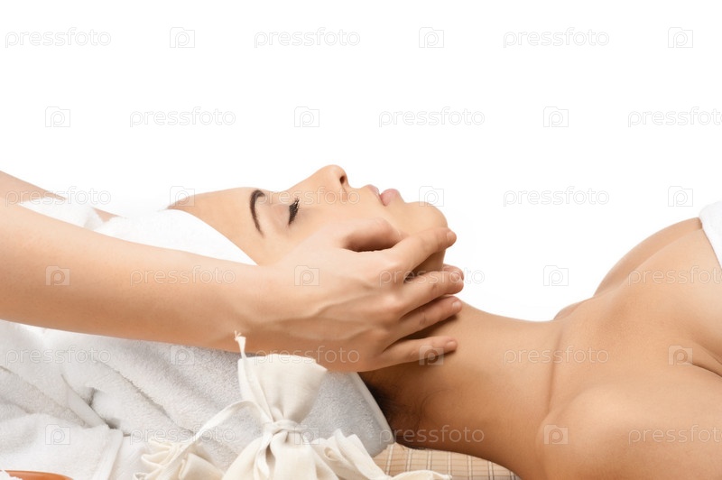Девушка принимает процедуры в спа-салоне. Изолировано на белом фоне