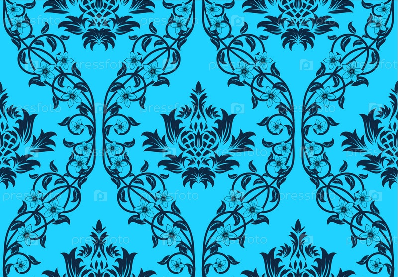 Голубые обои с цветочным узором