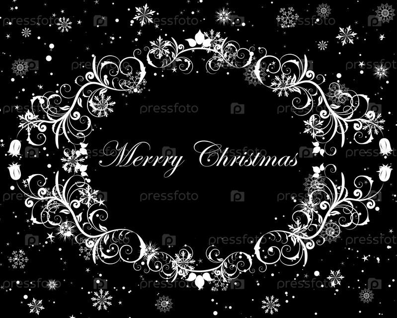 Иллюстрация Рождества, белые снежинки на черном фоне