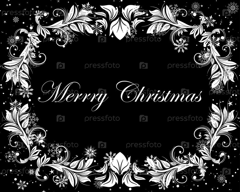 Иллюстрация Рождества, белые снежинки на черном фоне