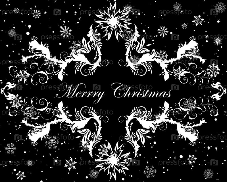 Иллюстрация Рождества, белые снежинки на черном фоне