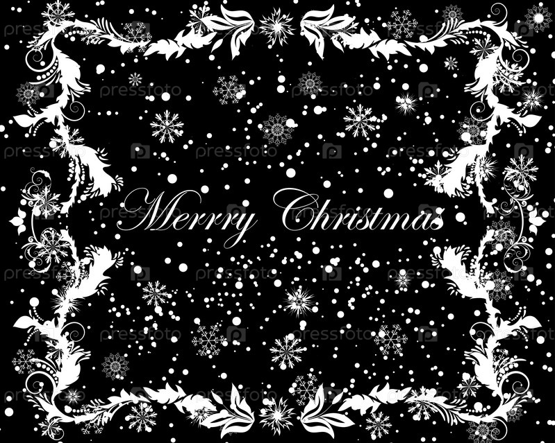 Иллюстрация Рождества, белые снежинки на черном фоне