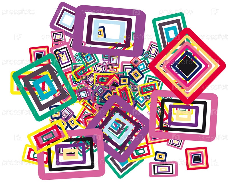 Множество разноцветных клеток, белый фон