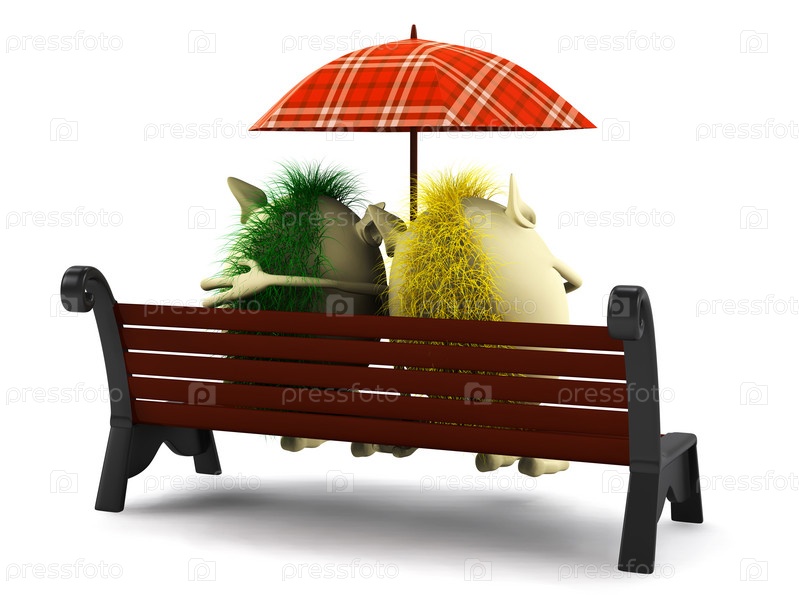 Две забавные куклы на скамейке