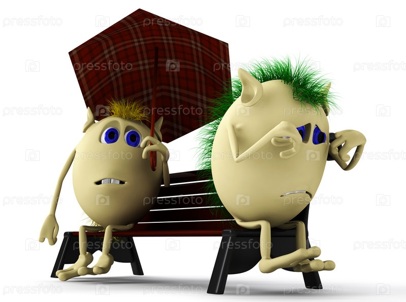 Две забавные куклы на скамейке