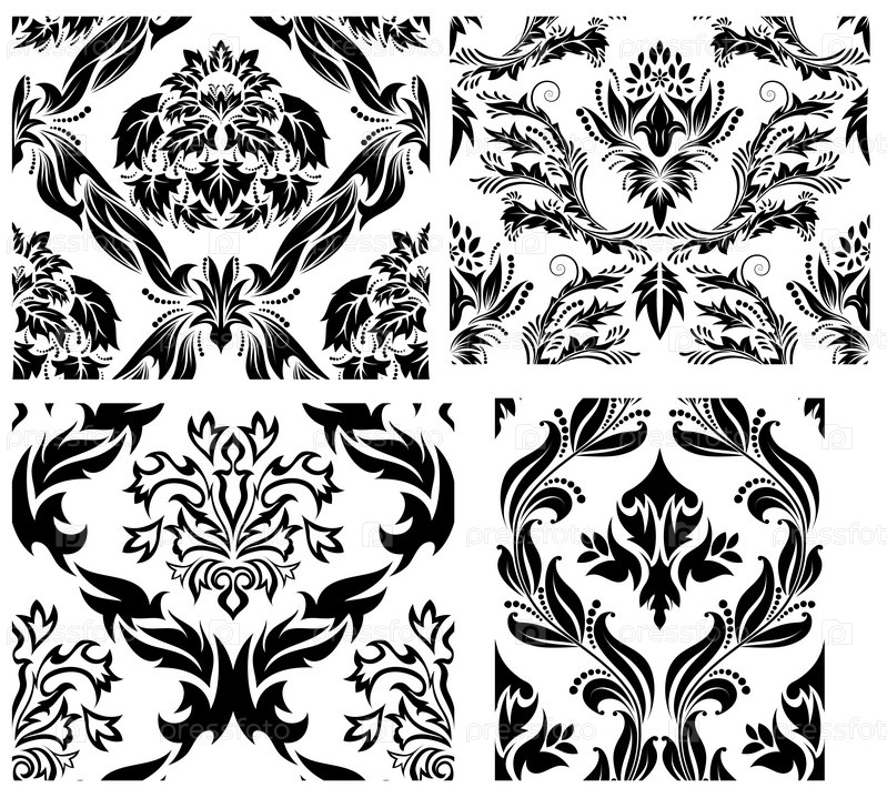 Декоративный орнамент, бесшовный фон, набор из четырех элементов