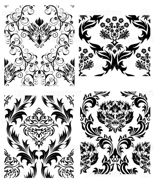 Декоративный орнамент, бесшовный фон, набор из четырех элементов