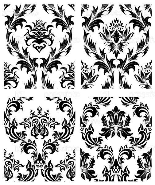 Декоративный орнамент, бесшовный фон, набор из четырех элементов