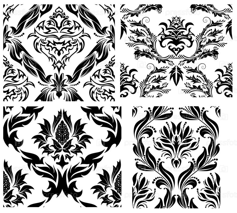 Декоративный орнамент, бесшовный фон, набор из четырех элементов