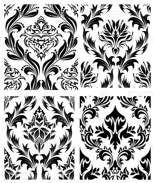 Декоративный орнамент, бесшовный фон, набор из четырех элементов