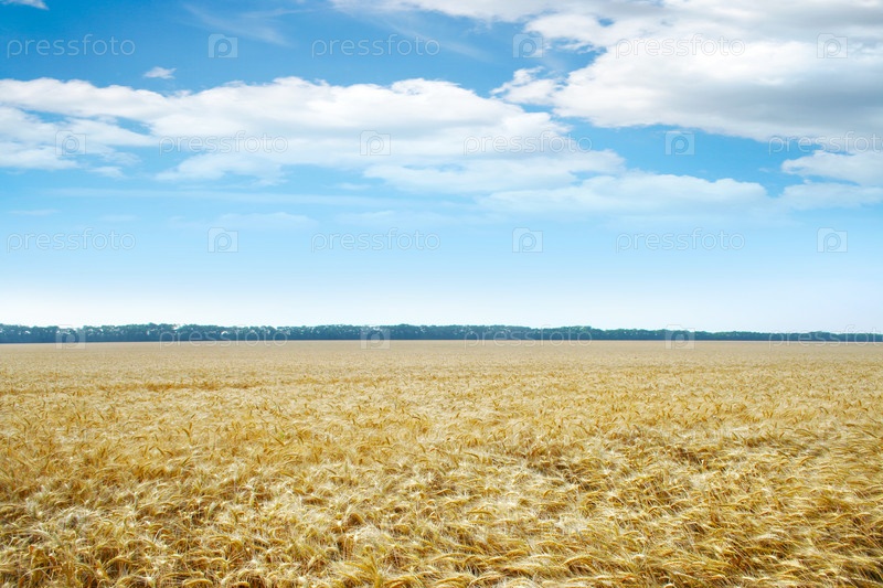 Поле злаковых под голубым небом