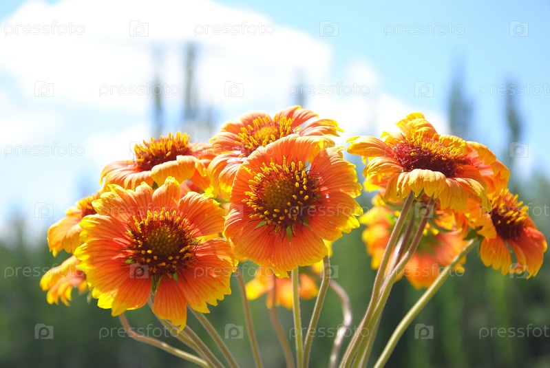 Красивые оранжевые цветы на фоне неба