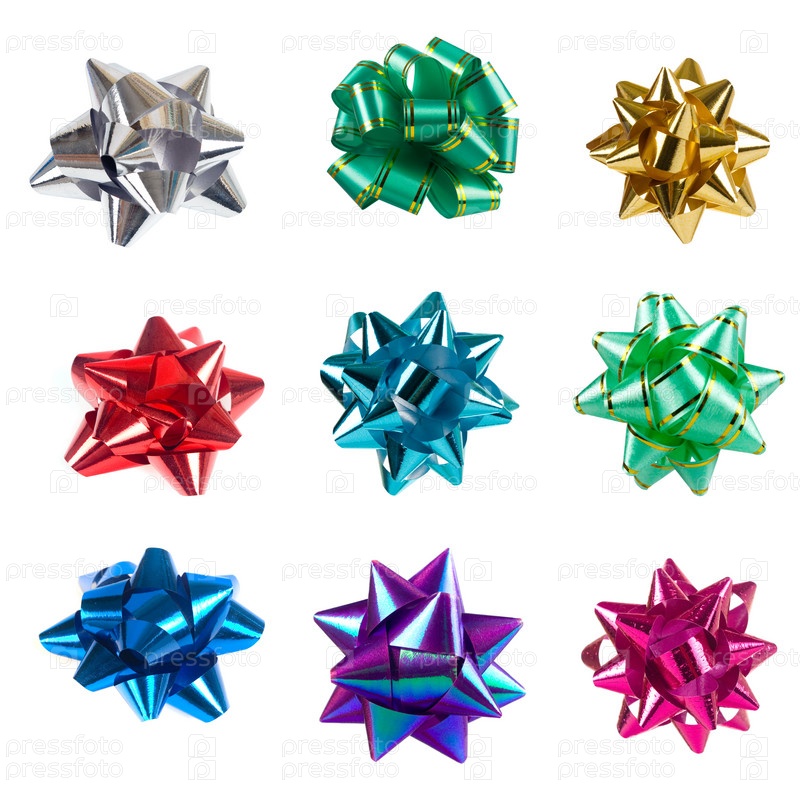 Разноцветные декоративные банты на белом фоне
